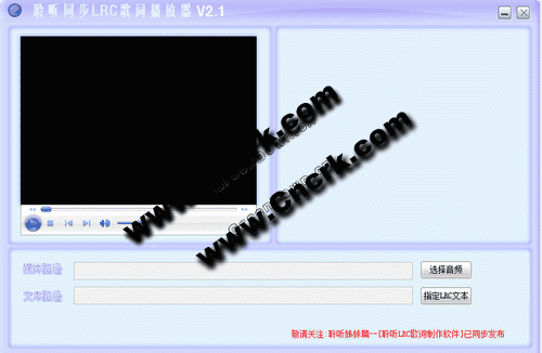 聆听同步LRC播放器 V2.2 简体中文绿色免费版 聆听同步lrc歌词播放器,是一款很好的同步lrc歌词播放器.她能实现LRC歌词的同步播放显示,美观,大方,是您聆听MP3,wma音乐甚至各种视频文件的好伙伴!其姊妹篇软件[聆听LRC歌词制作软件]已经同步免费发行,欢迎下载试用!下一版本将增加播放器功能,尽请期待。好了,下载之后先睹为快吧!