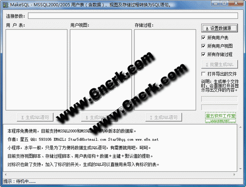 SQL语句生成及分析器帮助您将MSSQL2000及2005中的表、存储过程及图生成相应的SQL语句,方便您使用或维护数据库。