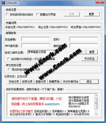 该软件可以将计算机键盘的操作记录到一个文件中,并可以将记录内容通过电子邮件发送到指定的邮箱。