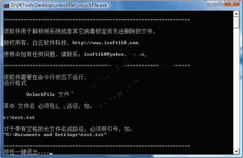 该软件用于解锁被系统或者其它病毒锁定而无法删除的文件。