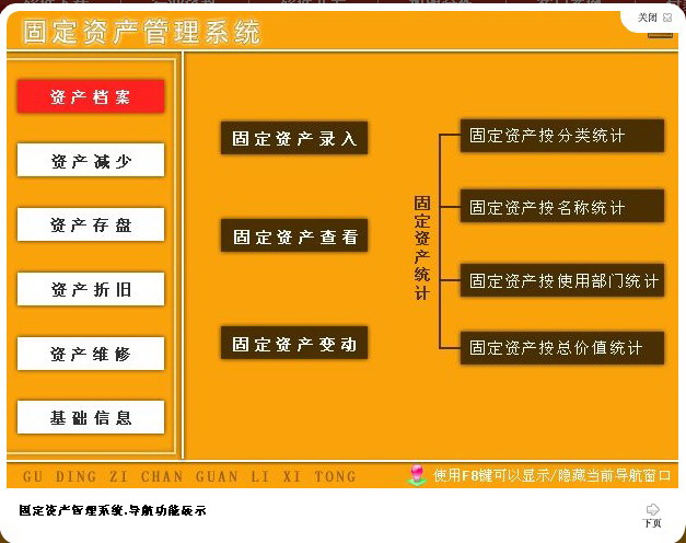 《宏达固定资管理系统》帮您排忧解难。是一套通用性极强、功能极强大、内容极完整的的固定资产管理系统,协助各单位对资产档案、资产统计、资产减少、资产清理、资产转让、资产盘存、资产盘盈、盘亏报告、资产折旧、月折旧总额、使用部门月折旧额、资产维修、维修费用统计进行全面管理的系统。资产管理资料完备,打印灵活。提供资产的综合查询,可以对固定资产按各种条件查询,按资产分类统计、按资产名称统计、按资产总价值统计、按资产使用部门统计。提供资产维修费用统计查询,按使用部门统计维修费、按资产名称统计维修费、统计维修费用总额。各种资料可方便打印成自由设定的表格方式。系统配有详细的开发帮助、资料文档,操作演示图文并茂,简便易用。整套软件以其功能强大,开放性好,价格低廉,可应用于电子、电器、医药、服装、建筑、物资、化工、商贸、超市、旅游、机械、建材、科技、通讯等各类企业公司,同时可应用于机关、事业单位、学校、研究所等机关事业型单位。