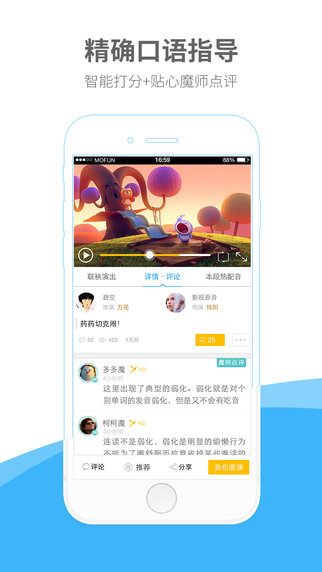 每个魔友都将拥有自己配音的视频大片,还能分享到朋友圈尽情炫耀!从此告别“开口就紧张、发音总蹩脚”的境地,让你彻底爱上说英语!