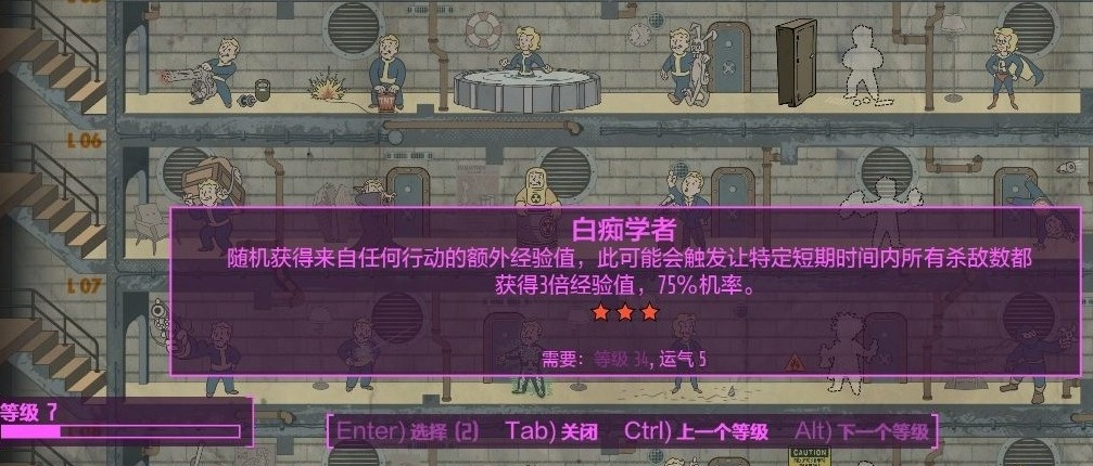 辐射4白痴学者几率提升mod,根据每个等级的几率1级25%2级50%3级75% 且和智力等级无关。就是说无论你几点智力只看技能等级决定几率。喜欢的朋友不要错过!