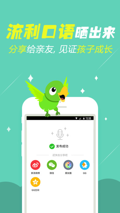 5.社交功能:这里有诸多爱好英语的小神童,你可以时刻关注ta的最新动态,即时语音、个性化表情、图片聊天,互动交流更有趣!同时,将你的配音作品分享到朋友圈,即可接受众人的膜拜!