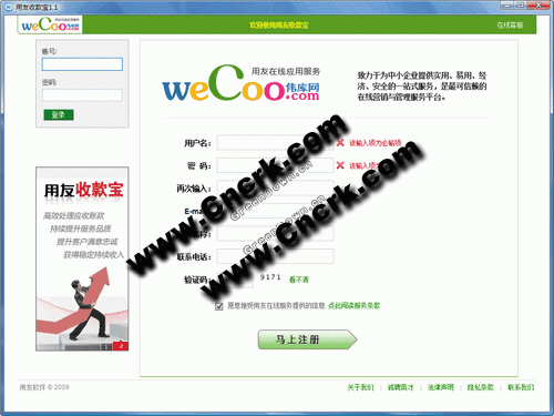 用友收款宝 V1.1 简体中文官方安装版 用友伟库收款宝是基于互联网模式、专为项目型销售的企业提供集合同、回款、费用和服务管理为一体的服务。应用收款宝,能够帮助企业监督回款计划及执行的全过程,估算合同的收入与毛利,同时完善服务流程和反馈响应机制、促进服务质量持续提升,提高客户满意度和忠诚度,从而保障企业业务管理的稳定有序。为什么选择收款宝?1、提升客户满意忠诚,获得稳定持续收入;2、围绕合同查看进度,控制项目费用成本;3、高效处理应收账款,持续提升服务品质;4、避免财务坏账风险,确保服务执行到位。