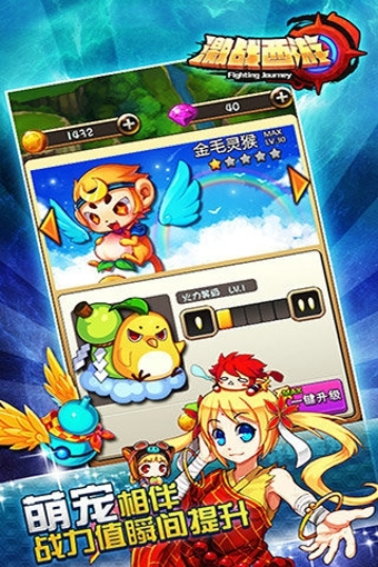 激战西游手游是由西游记改编的一款飞行射击类游戏,采用Q版人物设计,玩家在游戏中将能够体验到与众不同的师徒四人,并且每个角色都有着独特的攻击模式和必杀技,试着通过更多的关卡吧。