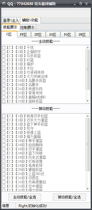 街头篮球改能力辅助功能多多,稳定强大。完美修改能力值,技能稳定不错乱,不闪退、不掉线,超级盖帽,超级篮板独家功能风骚全场!F1一键开启加强,F3一键关闭,让您用的舒服,支持全系统,支持全屏。如果有需要就拿去吧!