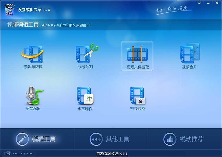 这里简单介绍几个视频编辑专家使用的方法吧。打开软件,进入主界面