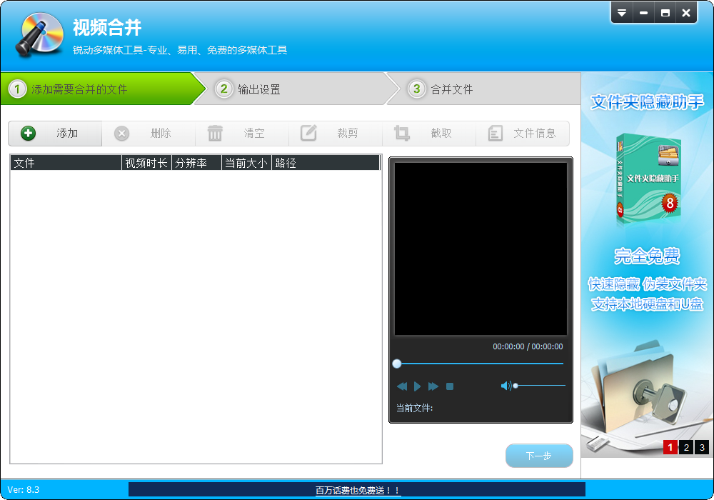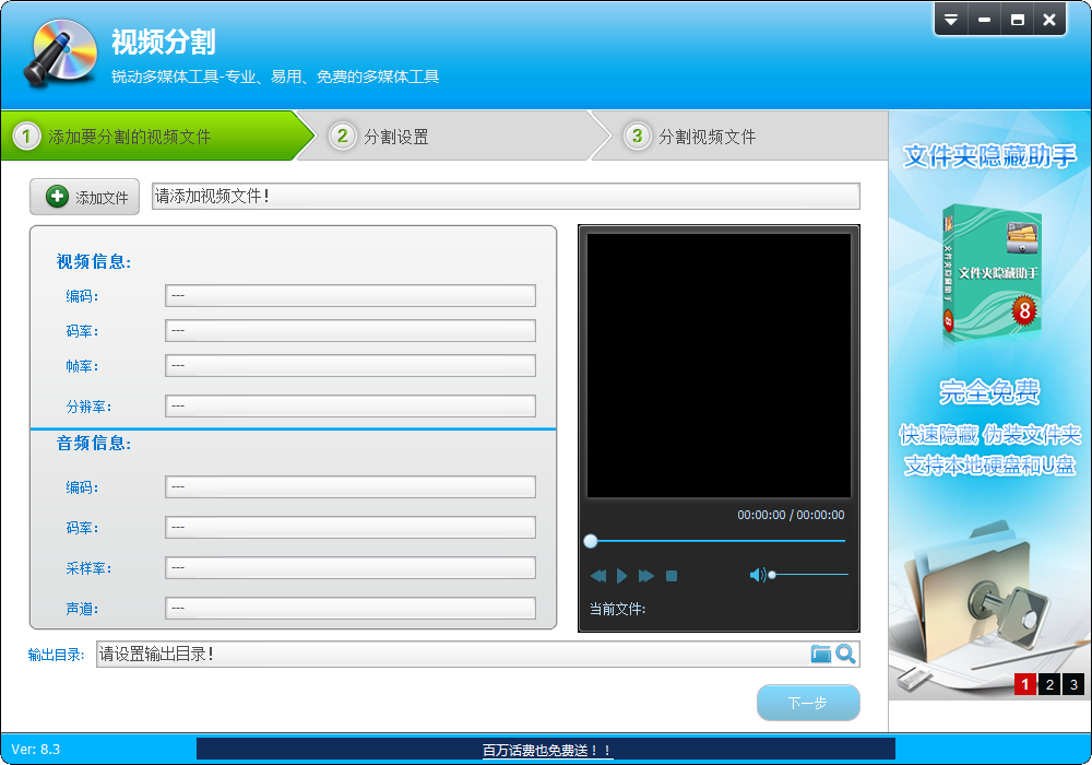 截取文件时间选择。比如说:你觉得从电影的第3分钟到第6分钟04秒的这一段非常精彩,那就把时间设置后,点击【下一步】即可。