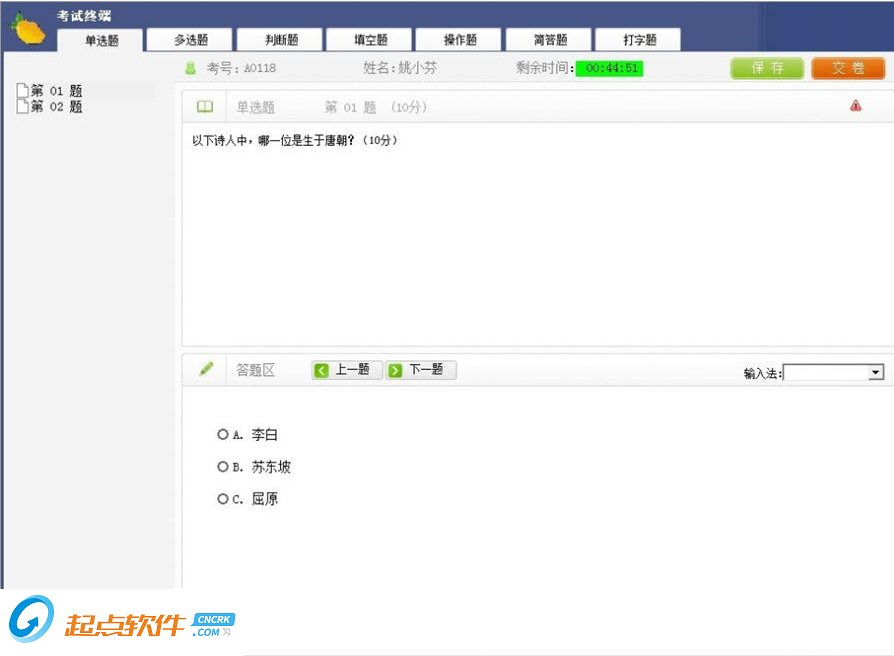 1、支持B/S和C/S两种考试终端,支持从word导入题目,支持视频监控。