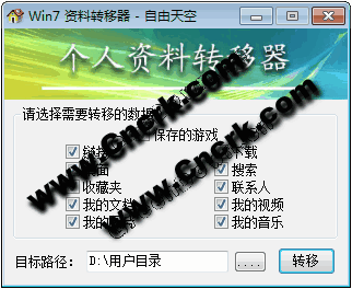 win7资料转移器1.0 绿色版 添加目标路径默认为D:\用户目录