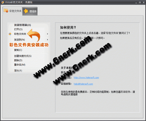 厌倦Windows那千篇一律的黄色文件夹了吗?Vista彩色文件夹可以快速让你将文件夹变成红色、绿色、紫色、粉红等各种颜色,你只需要在想要改变颜色的文件夹上面点击右键,然后选择你想要的颜色就可以了!就这么简单,你就拥有一个个性化十足的文件夹了。