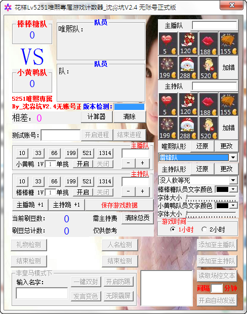 花样直播计数器软件更新增设 土豪礼物快速计数,计错数目一键撤回等功能,方便简洁