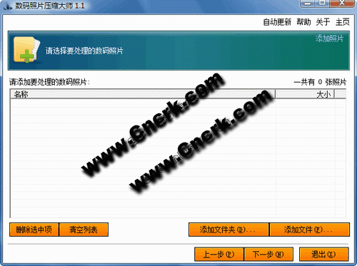 其实数码相机拍的照片都是没有经过压缩的,所以一般情况一张照片有1MB-3MB左右,有些甚至高达5MB。设想一下,每次去拍照回来,相机中有几百兆的照片,然后要把它们拷贝到你电脑上,来回几次,你电脑上几十GB的空间就没有了。那要怎么样才能留住您心爱的照片,又使照片的体积变得最