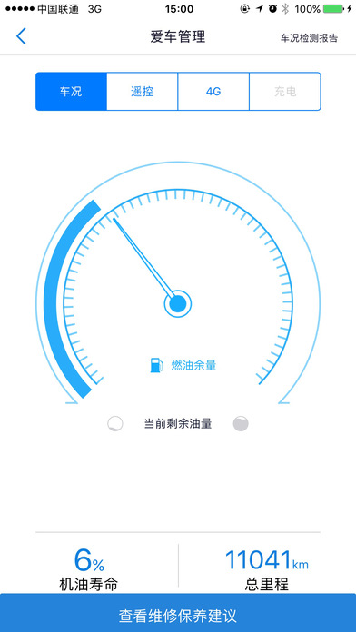 浏览车况信息,如燃油余量、机油寿命、可行驶里程等(具体信息以您的车辆配置为准)。