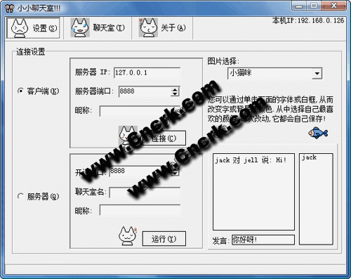 本软件可以在局域网和广域网中以TCP/IP的通信方式建立一个能同时容纳100在线的聊天室!界面友好,可自定义字体颜色,背景颜色等