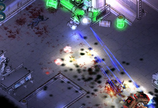 长长通道里,一拨又一波的敌人,杀得人血脉喷张。到通道尽头上面的房间取得最后三个炸弹后,还要到右下的大房间里打爆激光塔开门,又是一场血战。虽然敌人众多,采用“运动”战术不断消耗它们,清理光最里面右下房间里的敌人,炸掉最后三个传送器,过关。