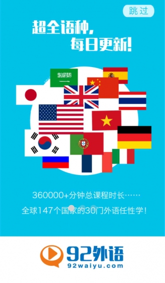 92外语网,在线学外语热门品牌,多语言、实用主题式外语学习平台!提供英语、日语、韩语、法语、德语、俄语、西班牙语、葡萄牙语、意大利语、阿拉伯语、希伯来语、泰语、上海话、闽南话、粤语等全球147个国家的近30门常用语言课程,多达1200多个实用主题内容。【功能】