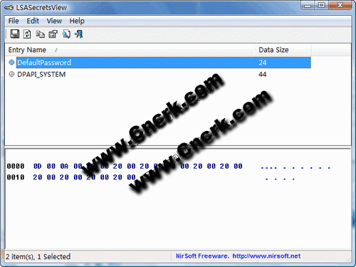LSASecretsView V1.21 英文绿色免费版 无需攻击 LSASS 进程即可解密出包括管理员密码、拨号密码、ASPNet密码等在内的系统重要密码,由于像前面说的此软件无需对 LSASS 进行,所以不像其它系统密码工具那样工作时可能造成死机:)解密出来的密码是以HEX值显示的。