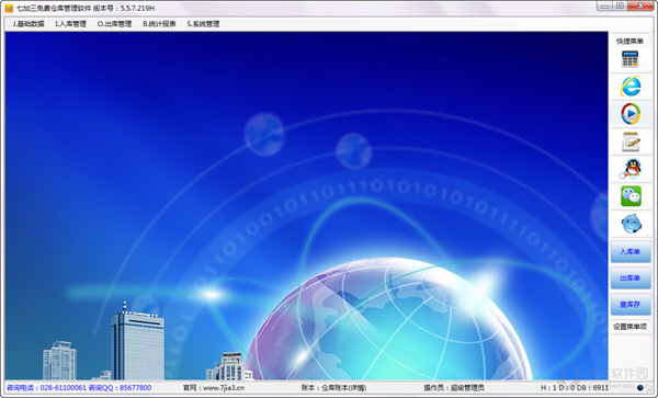七加三免费仓库管理软件是一款超级好用的仓库管理软件。它拥有八大模块,基础数据模块、入库管理模块、出库管理模块、统计报表模块、系统管理模块、软件帮助模块、自动升级模块、其他软件模块等。