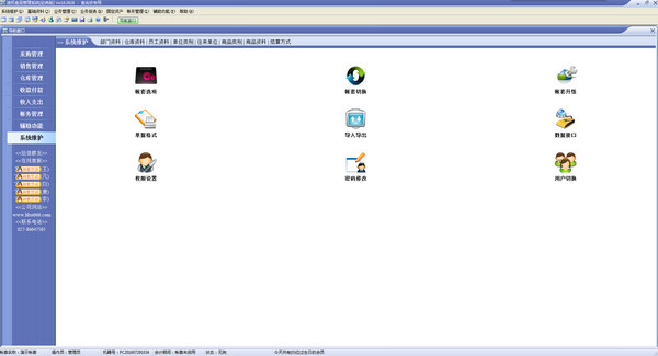 29、常用工具软件丰富。迷你计算器、帐套数据的导入导出、帐套初始化及帐套压缩、修复等为维护系统的正常运行提供了强有力的保障。