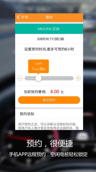 预约:通过爱充网官网和手机应用软件,用户可对目的地充电桩进行线上预约。通过购买等待时间,实现即到即充。使充电时间变得可控。