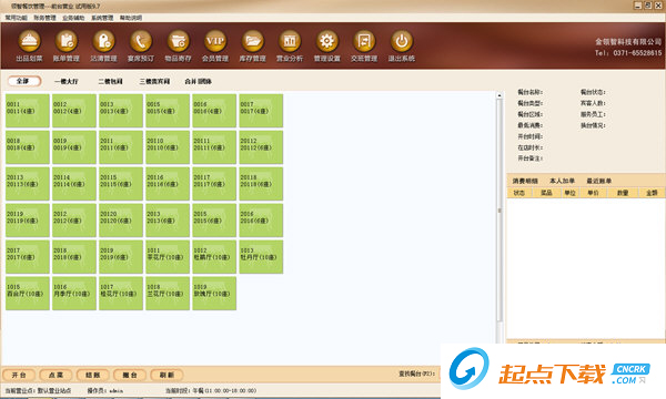 1、前台营业宾客开台:支持普通宾客开台、团体宾客开台、预订宾客开台,并为餐台指定值台服务生以及宾客人数;