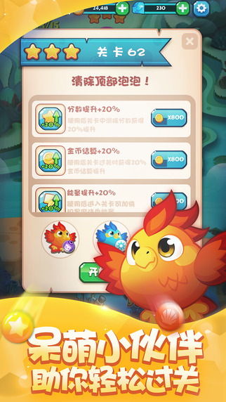 令人兴奋的《泡泡喵海岛历险》拥有特殊的强化道具和泡泡道具,助你勇闯难关。玩家爆掉泡泡时,有机会在已有泡泡中产生道具。当玩家将含有道具的泡泡爆掉或击落,都会得到其中的道具。