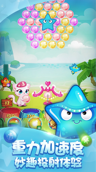 《泡泡喵海岛历险》是网易出品的创新体感泡泡消除类游戏。它是一款通过消除泡泡,从而得到星星、解救伙伴、打败邪恶的章鱼怪的休闲手游。通过倾斜手机控制泡泡的掉落方向,使泡泡掉落到中间的积分桶,还有机会获得免费道具奖励。玩法轻松休闲,单手即可操作。可爱精美的卡通风格,辅以逼真的物理碰撞效果,便捷的操作方式,让消除泡泡乐趣丛生!【游戏特点】