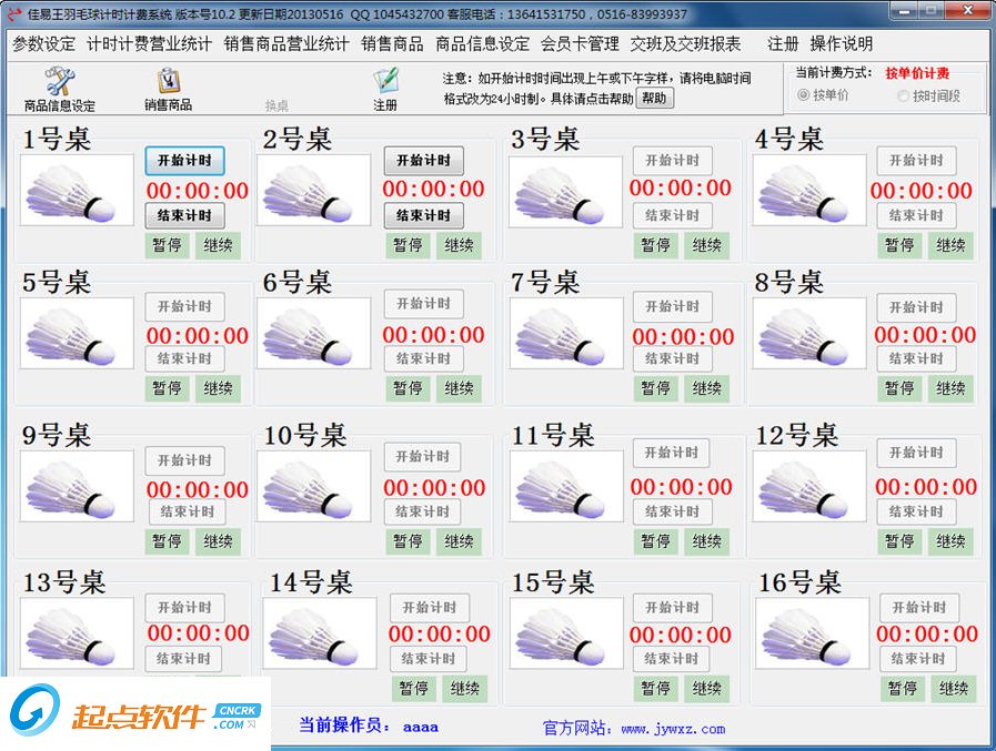 佳易王羽毛球馆计时收费管理系统软件是一款专为大中小型的羽毛球馆设计的计时收费管理软件。轻轻松松的同时管理多个羽毛球场地计时情况,自动根据计时情况来进行收费,使用很方便。