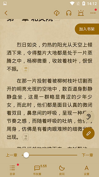 5、在阅读界面的下方,你能够对阅读相关的设置进行更改,同时也能在此处将小说添加到书架。