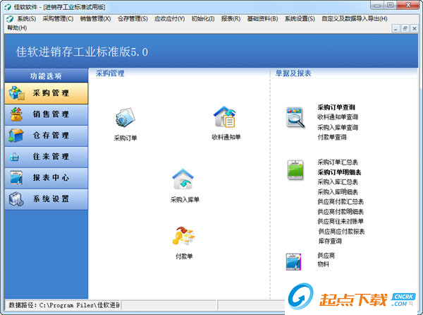 佳软进销存软件(标准版)是一套专注于企业核心业务“采购、销售、仓存、应收应付、财务管理、存货核算”的管理软件。我们吸取了国内外优秀软件及企业用户的应用经验,通过灵活的供应商和客户管理,帮助中小型企业建立一个信息集成的工作环境,实现业务运作的信息共享与全程控制, 使用户高效率地管理好存货、仓库。同时美观、简洁的设计界面,使用户能很快掌握软件的操作方法。【软件特点】