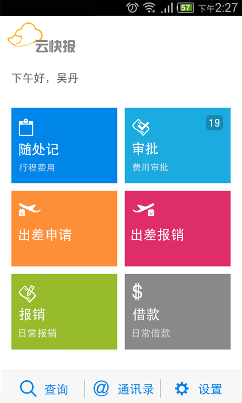 云快报是北京元年科技股份有限公司推出的一款免费差旅报销管理平台,使用云快报可以使账目报销情况一目了然,大大提高了工作效率,是出差星人不可错过的一款移动报销考勤办公神器。