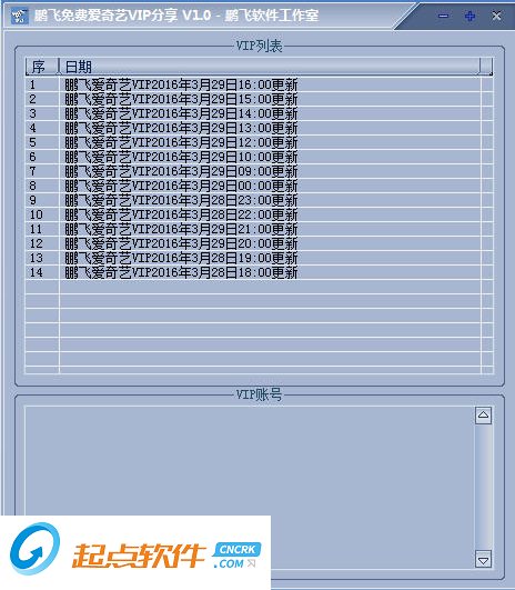 鹏飞爱奇艺vip会员共享软件就是为广大爱奇艺视频网站用户所谋取的福利,每天不间断的更新一个爱奇艺的vip会员账号,让爱奇艺的视频用户们可以不充值也可享受到vip的视频待遇。