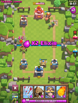 9,尽量做到熟记所有你见过的卡牌的圣水费用,因为这有助你了解对面在使用这张卡牌之后还有多少费可以进攻,比如对面如果下了一个皮卡+王子,已经9费了,这个时候如果你使用4费的骷髅军团解场之后,对面只有1费,你有6费,这个时候如果不建议直接下个王子冲塔,因为对面可能有2费的哥布林挡刀,等一等到你有9费10费的时候对面只有5费6费,可以利用圣水差打一波反击。