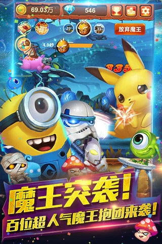 魔王暴乱时代来临!皮卡丘、小黄人、大白等众多萌物集体叛变,并且表示卖萌犯蠢工资太低了,还是魔王比较有前途。但是我们的忍者表示不服!忍者带领着贱龙们强势登场,五个属性不同的贱龙各具特色,他们可不仅仅只是卖萌的吉祥物,无论金钱、装备都会为忍者提供哦!就让我们来对付你们这些战五渣魔王吧!