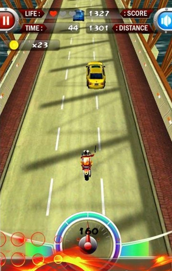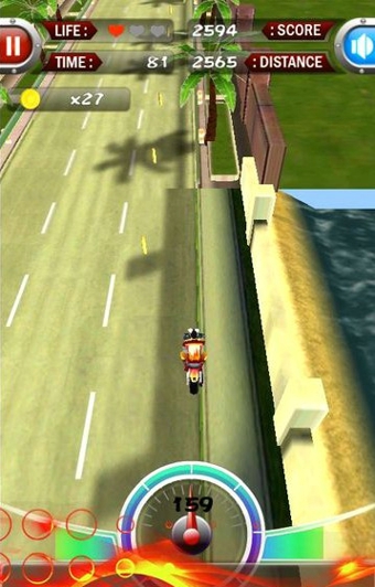 涡轮摩托3D是一款全新3D纵版竞速游戏,性感火辣的美女,爆裂轰鸣的引擎,紧追不舍的警察保证会让你大呼过瘾!努力让自己走的更远,得到更多金钱,去解锁更给力的坐骑吧!