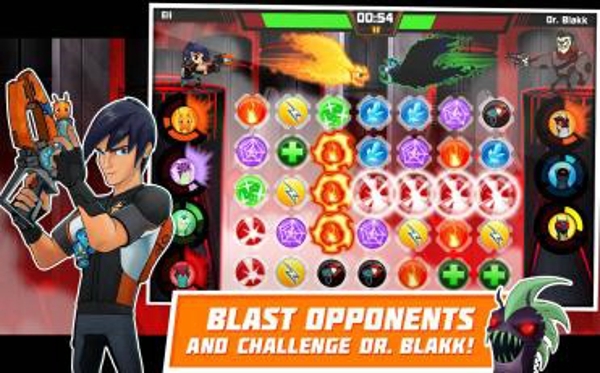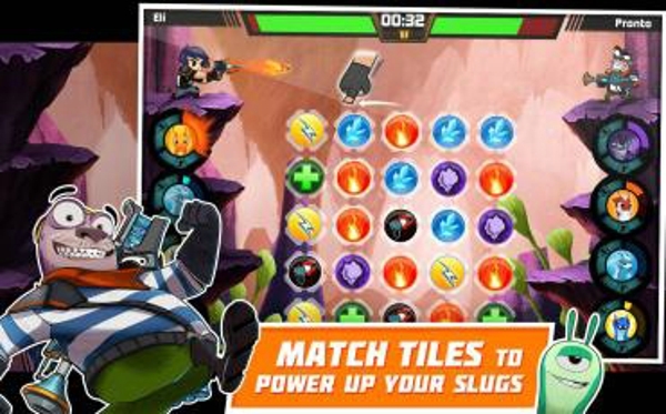 《斯拉格精灵:一决雌雄 Slugterra: Slug it Out!》是Nerd Corps Entertainment开发的一款休闲益智类游戏。在游戏中,玩家可以装备各式各样的斯拉格精灵挑战邪恶的 Blakk 博士。在消除战斗中,通过滑动配齐至少3个元素方块进行消除,消除不同的元素方块会有不同的效果,有攻击的,也有回血的,特殊精灵子弹还需要积攒消除相应的能量才可释放。在消除同时,画面上方也能即时看到对战两人相应的攻击动作。准备好了么?就决定是你啦!丢出宠物球,哦不,填入宠物弹战斗吧!