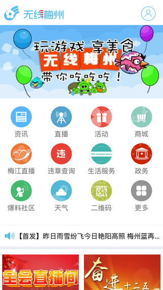 无线梅州app是一个闻资讯整合宣传平台、政府公共信息查询平台、市民生活信息服务平台,无线梅州app与普通人的日常生活无缝对接。看新闻、看电视广播直播、交通违章查询等丰富功能等您来体验。