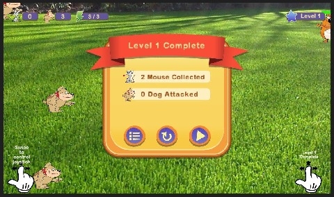 您是著名的鼠标猎人和老板在你的花园。你的任务是捕捉调皮鼠标从花园。但是,这也不是那么容易的,因为有你周围饥饿和危险的狗成群。准备咬你,如果你犯了一个错误。所以,你应该逃避,通过你的任务的攻击犬。有16个级别中的免费游戏。下一级被解锁,当你完成当前的水平。通过对边角的虚拟操纵杆在屏幕的底部将猫身边。
