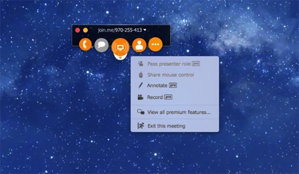 Join.Me提供屏幕分享服务,在分享端运行程序后,通过唯一的连接,可以分享给他人,并支持语音及文字聊天,以及远程控制。【使用方法】