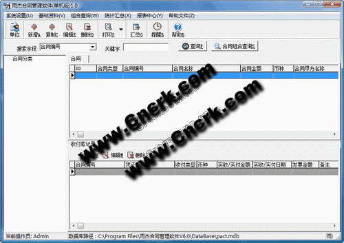 雨杰合同管理软件 V6.0 简体中文绿色特别版 完善的合同管理是公司健康运作的一个重要标志。雨杰合同管理软件简单易用,可方便的帮助你对供货商和客户的合同进行管理,协助您完成应收应付款分析,自动统计所有供货商和客户的应收应付款额,为您大大节省工作时间,提高工作效率。雨杰合同管理软件将是您明智的选择。