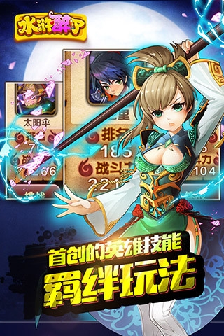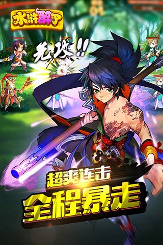 《水浒醉了》是一款中国风Q版手游,在细腻精致的美术表现下,采用节奏紧凑的半回合制战斗模式,搭配首创的英雄技能羁绊玩法,让您在游戏过程中与梁山好汉一起闯荡江湖,享受追打、连击所带来的超爽游戏体验。战前调兵遣将、战中运筹帷幄、战后火速提升!各路好汉性别反串,颠覆经典,让您热血沸腾,全程暴走!【游戏玩法】