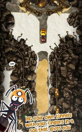 作为一款解谜游戏,本作的主旨一直围绕着“破除严寒,寻回温暖的”。游戏采用竖版的方式,玩家指引蚁群们在土中一路挖掘。在快节奏和高自由度的挖掘中,你会遇到很多匪夷所思的地势和危险,排除万难,向温暖的地方金发。