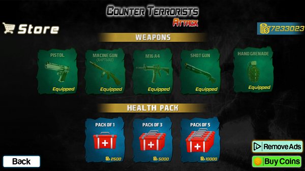 《反击恐怖袭击 Counter Terrorist Attack》是一款打装的射击战游戏。在《反击恐怖袭击》中遇到敌人的装甲,AK-47步枪,猎枪和新的具有破坏性的武器。现场拍摄!你是从军队勇敢的刺客突击队。瞄准你的对手的头部射击,努力,以便没有凶猛的恐怖分子可以逃跑。有了每一个有针对性的枪,你会在实践中与你的目标。准确而精确的瞄准实践将导致更高的精度和消除恐怖主义的前沿拍摄。记住;他是邪恶的恐怖分子,你要去特警和杀人。反恐运动更先进的功能,允许你选择的弹药,像散弹枪,AK-47,在行动的机枪从不同的地方。深入到敌人的领地去寻找和消灭隐藏的目标。盯着你的步枪瞄准镜,放大到找到并找出目标。做一次呼吸……然后拉扳机,使击杀。