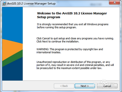 上边提供的两个版本的arcgis10.2都可以使用,版本二下载链接内含license Manager10.2和破解文件了。(本人教程使用的是“ArcGIS10.2版本二(推荐)”),点击setup.exe安装如图,同意服务进入下一步: