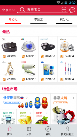 幸运汇:积分参与幸运活动,每日幸运大礼包括数码新品、旅游、家居、家电、汽车、住宅!