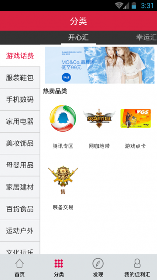 开心汇:积分免费兑换全场包含电子产品、服装精品、家居百货、地方特产等13大类共计37000余种优质商品或服务,全国免费包邮。