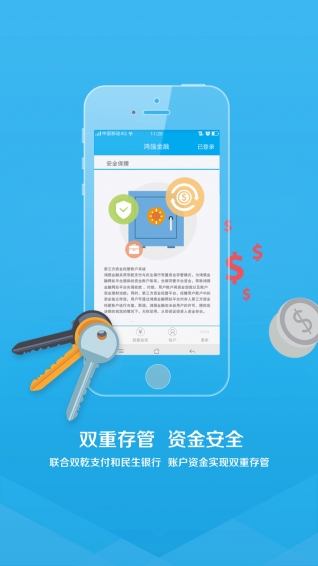 鸿强金融是由合肥市包河经开区管委会下属的合肥市包河城市建设投资有限公司,合肥市供销社下属的恒汇供销投资发展有限公司,合肥强劲置业有限公司,联合发起的国资控股P2P平台。鸿强金融以“发展普惠金融、服务实体经济”为宗旨,努力打造诚信、安全、增值的互联网金融信息平台,为中小微企业及个人提供安全、高效、便捷的金融服务。【软件特点】