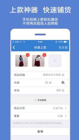 手机拍照上款一步搞定,专属频道展示,不再担心店铺没有流量;